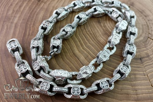 Авторская цепь из серебра "Спаси и Сохрани" 225 грамм