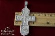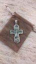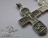 Изображено на кресте: Распятие Христово с предстоящими. Святая Троица. Архангел Михаил. Святые Воины. Тихвинская икона Божией Матери. Большой православный крест с чернением и позолотой.Высота: 8 мм