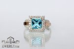 Изысканное кольцо с выразительным квадратным фианитом нежно-голубого оттенка, обрамлённым россыпью сияющих белых камней меньшего размера. Благородная основа из натурального серебра 925 пробы дополнена изящной вставкой из золота 375 пробы — тонкий акцент, придающий образу особую утонченность.